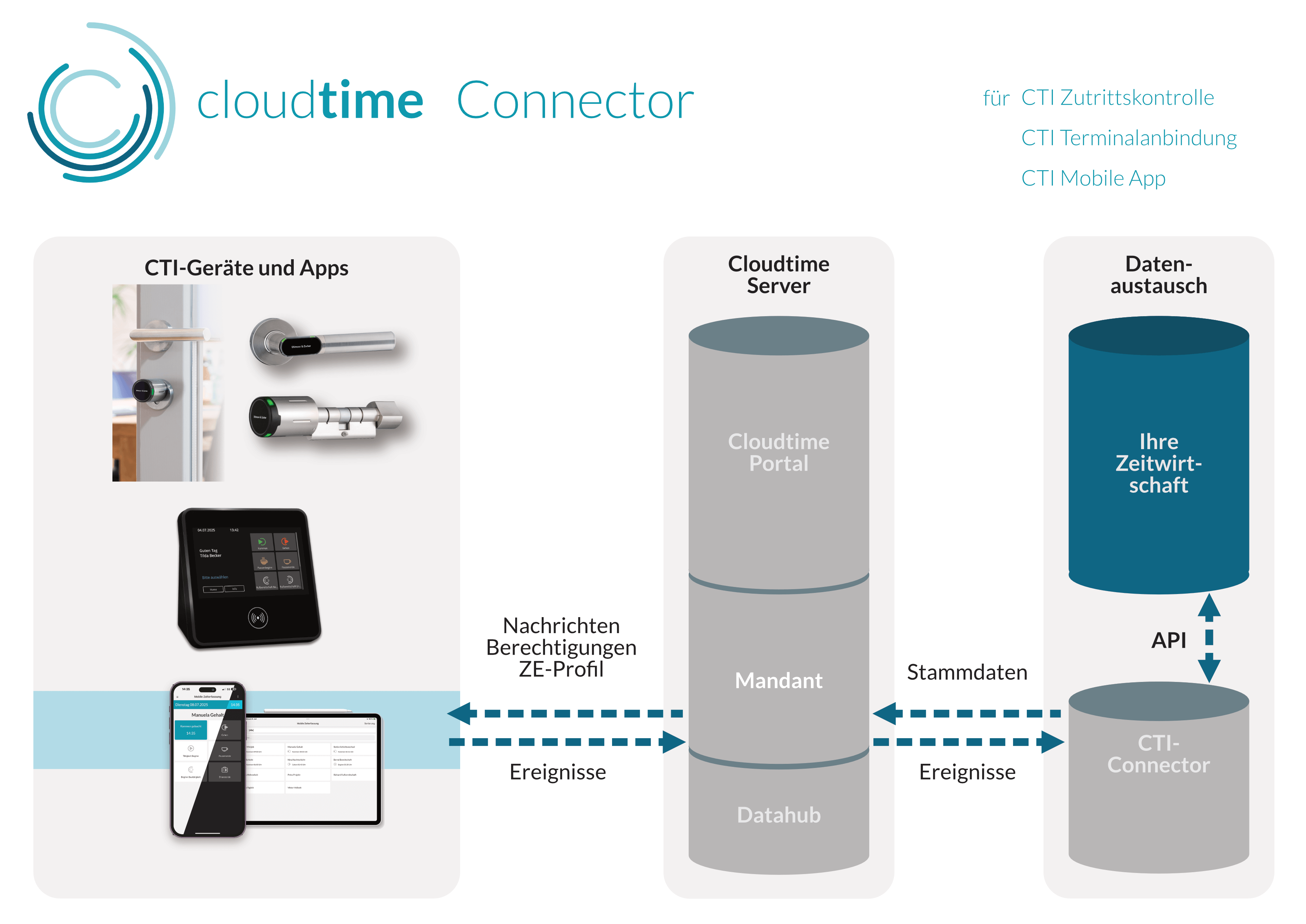 + Cloudtime Connector - Anbindung CTI-Geräte an andere Zeitwirtschafts- Systeme